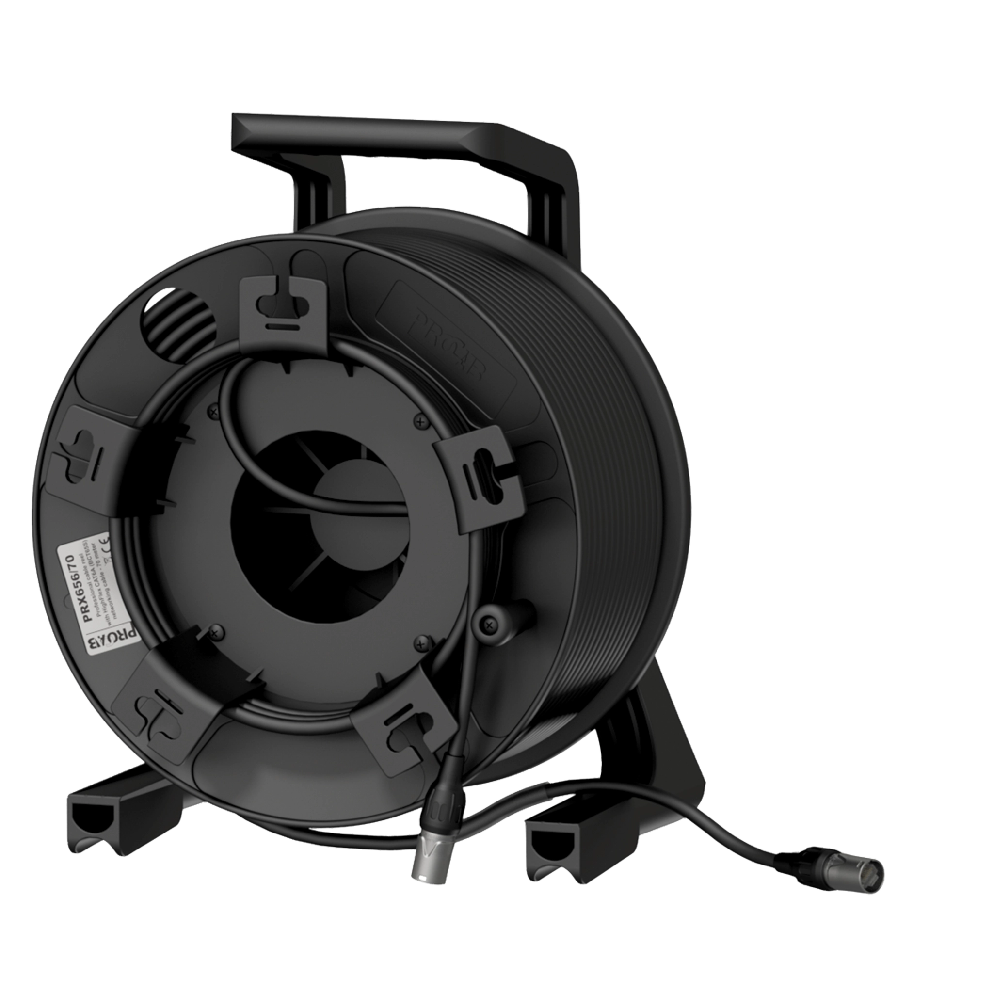 The PRX656 is a HighFlex CAT6A S/FTP cable (BCT65S) assembled on a lightweight, extremely strong and impact resistant reel (CDM310). Both ends are terminated by Neutrik Ethercon connectors, allowing direct connection from transmitting to receiving end without any additional connections or patch cords.